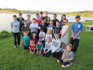 Banbridge Angling Club held the Juvenile and Junior Angler of the Year 2016 Prize Distribution Evening and BBQ at the Corbet Lough on Thursday 25 May 2017. There was a great turnout of anglers, parents, guardians, grandparents and friends. Daniel Moore had a great season in 2016 catching numerous fish at the Corbet. Although he is still a junior angler he won the coveted prize of Juvenile Angler of the Year 2016. Niall Tumelty was 2nd and Ellie Carson was 3rd. In the Junior angler category Adam Morrow won The Junior Angler of the Year 2016 title. This was Adam’s first year fishing these competitions and he also caught some great fish at the Corbet throughout the season. Daniel Moore was 2nd and Benjamin Quigley was 3rd. In addition to the distribution of the prizes Joe McCandless, Joint President and Martin Dynes presented the Club’s annual charity donation to Katrina Leonard from the Southern Area Hospice Services, which is this year’s chosen charity. Keith Cole, APGAI and William Cochrane, Coburns gave the young anglers some casting tuition and fishing tips. Sam Watt, Chair and other committee members gave some of the young anglers a chance to handle a fishing boat on Corbet Lough. The above photograph shows Daniel Moore, Juvenile Angler of the Year 2016, Adam Morrow, Junior Angler of the Year 2016 and some of the other juvenile and junior anglers who attended this very successful evening,