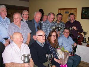 On Friday 26 January 2018 the Club held its annual Dinner Dance and Adult Prize Distribution in the Anglers Rest, Corbet. This was a very successful event with a very good turn out of anglers, riparian owners and friends of the Club. Damian Murtagh, Competition Secretary and his assistant Martin Dynes organised and compered the Prize Distribution with their usual professionalism. The prizes were presented on the evening by Special Guest Kelly Scappiticci. Roger McClements took the accolade of Angler of the Year 2017. Roger won this prestigious award on one previous occasion, back in 2014. It was also great to see Geoffrey Hylands, the current World Cup Fly Angling Champion. Geoff collected the Club’s Straghan Cup which he won on Lough Melvin in June 2017. On behalf of the Club, Damian and Martin thanked the Anglers Rest for providing a fantastic meal and setting for this event. They also thanked Besoke for the brilliant entertainment and Kelly Scappiticci for presenting the prizes. The above photograph shows Special Guest Kelly Scappiticci and the Club’s competition prize winners.